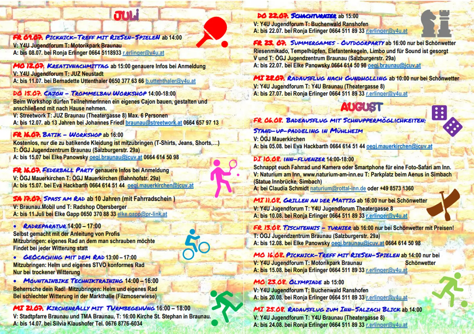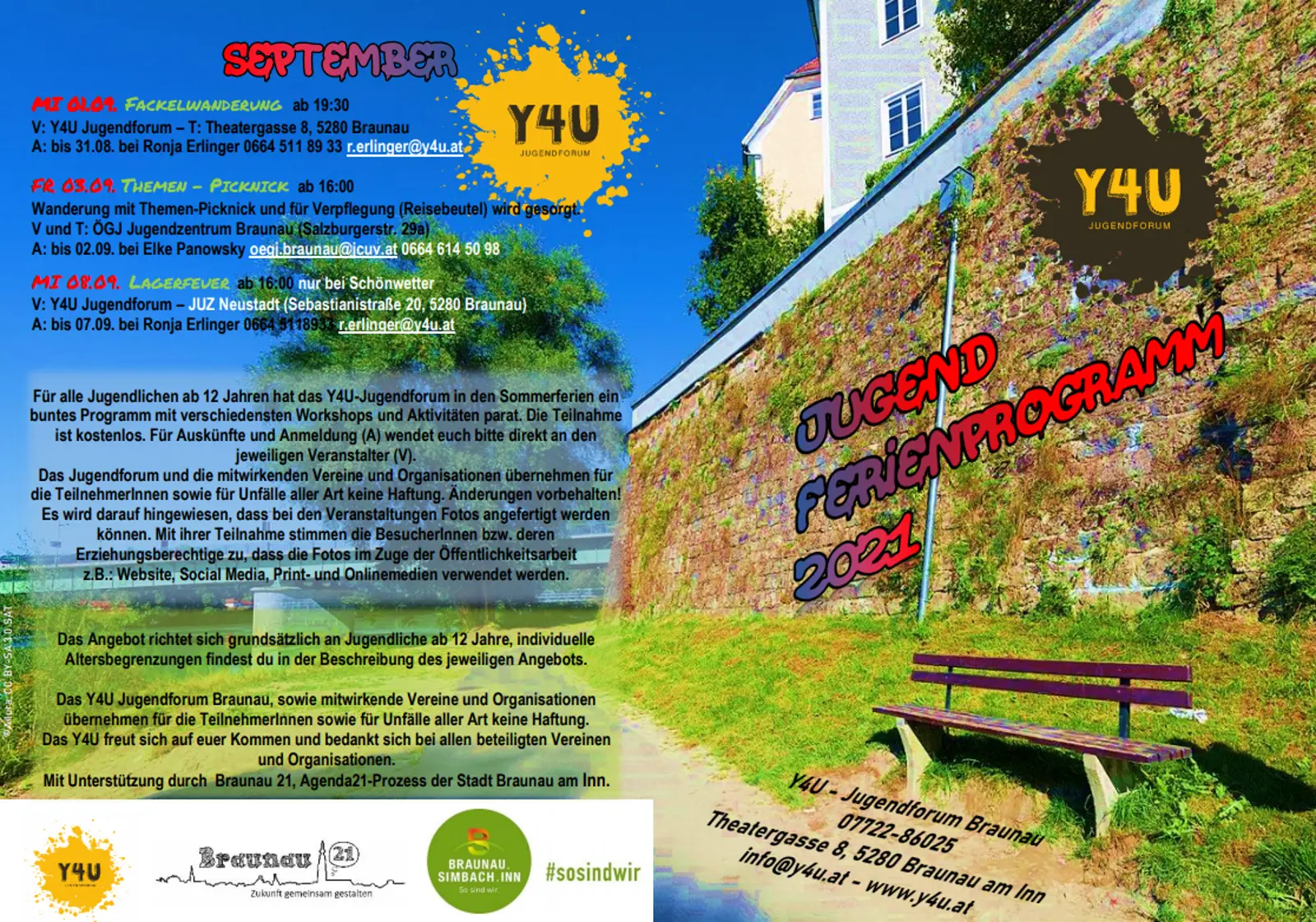 Im Jahr 2021 gab es wieder ein buntes Programm für Jugendliche ab 12 Jahren. Verschiedenste Workshops oder Aktivitäten wurden in den Sommermonaten angeboten.